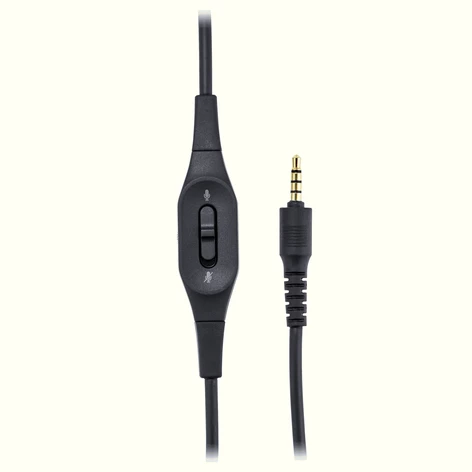 - 2-meter (6.6’) attached cable has a gold plated stereo mini-plug and includes a simple volume control and locking mic mute switch