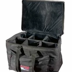 Gator’s G-LIGHTBAG-1911 is a lightweight tote bag with adjustable dividers that comfortably fits up to four LED PAR light fixtures.