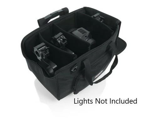 Gator’s G-LIGHTBAG-1911W is a lightweight tote bag with adjustable dividers, wheels and a telescoping pull handle. You can comfortably fit up to four LED PAR light fixtures in the case and be sure they’re secure thanks to the padded interior and adjustable dividers. The G-LIGHTBAG-1911W can serve as a base for stacking and transporting with the G-LIGHTBAG-1911.