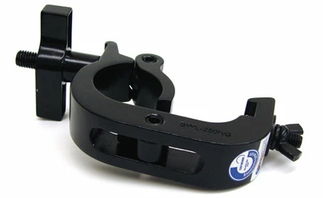 The Global Truss Trigger Clamp/BLK is a Black powder coat heavy duty hook style clamp for 50mm tubing.