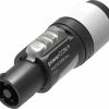 The Lex Products 20F-X is a 20 Amp, 125 VAC, 2-pole, 3-wire stage pin female inline connector with a clear terminal cover.