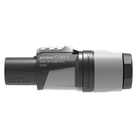 The Neutrik powerCON FXXA/FXXB is a single-phase (3 conductor) lockable power connector with Circuit Breaking Capability when mated with powerCON XX Series receptacles. This connector is keyed and color-coded grey for power out. It is designed for appliance couplers where a very rugged solution in combination with a locking device is needed to guarantee a safe power connection. This connector is compatible with cable diameters between 10 -16 mm.