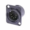 4 pole cable connector, female. Black metal housing and gold contacts.