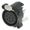 Neutrik’s NC4FXX-B 4-pole XLR-F cable connector with black metal housing and gold contacts.
