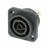 5 pole right angle female cable connector, black metal housing, gold contacts.