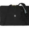 The Porta Brace TLQ-35 Quick Tripod/Light Case has a padded interior, interior reinforcing bars, and is made of 1000 denier Cordura nylon. It can carry 2 or 3 assembled light stands or a tripod with head that are/is 34.5″ long or shorter. Also features suede leather-covered handles, a suede leather shoulder strap, exterior and interior pockets, a red tie-down strap, and a rigid foam padded case bottom.