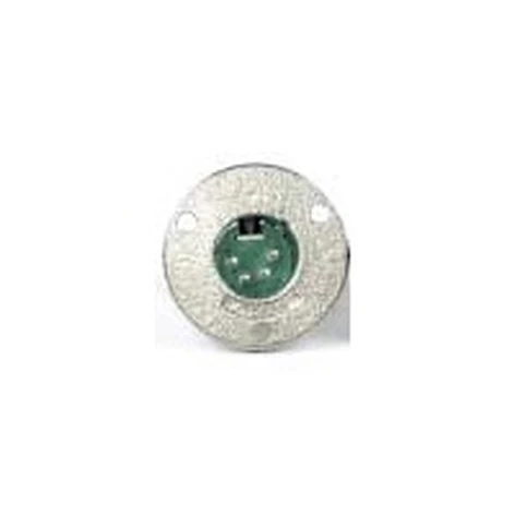 Male receptacle for panel or chassis mounting. Flange has three .140 inch (3.57 mm) diameter holes for #5-40 mounting screws (not supplied). Mounts from front of panel or chassis in .766 inch (19.45 mm) diameter hole.
