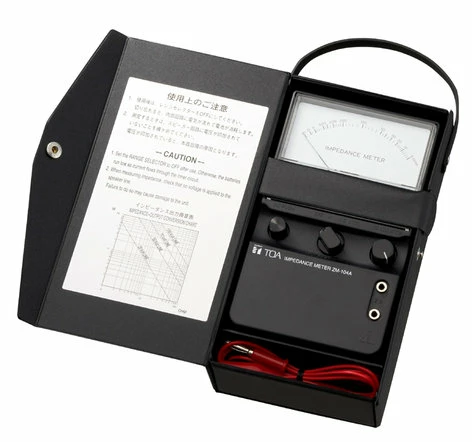 The ZM-104A Impedance Meter can measure the impedance of speaker lines easily, in the same manner as a circuit tester measures resistance. Requires four AA batteries.