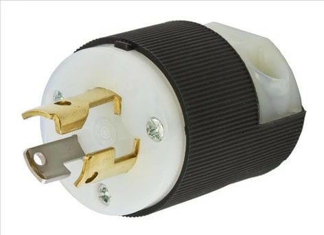 The HBL4720C is a 2-pole 4-wire 15A/125VAC Twist-Lock® NEMA L5-15P Insulgrip® Grounding Plug, made of black and white nylon body, brass blades, #8-32 brass Phillips/slotted/Robertson screw terminals and 5.8 to 18.3mm cord diameter.